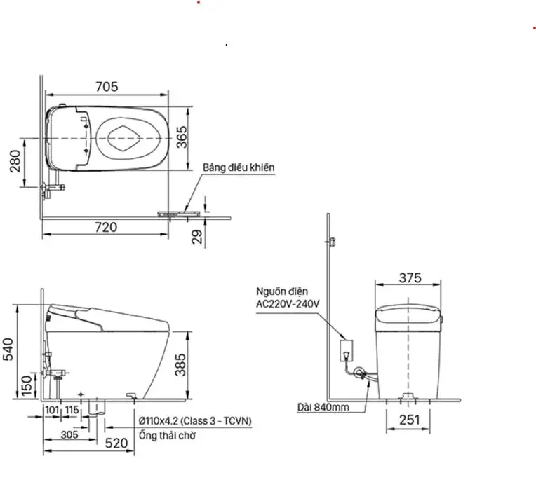 Bản vẽ kỹ thuật Bồn cầu điện tử AC-G216VN/BKG