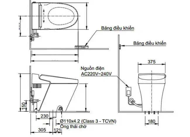Bản vẽ kỹ thuật bồn cầu điện tử INAX AC-G216VN SATIS