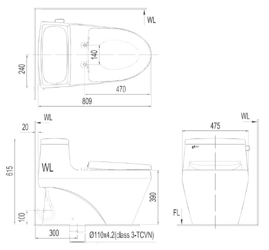 Bản vẽ kỹ thuật bồn cầu INAX AC-1135VN