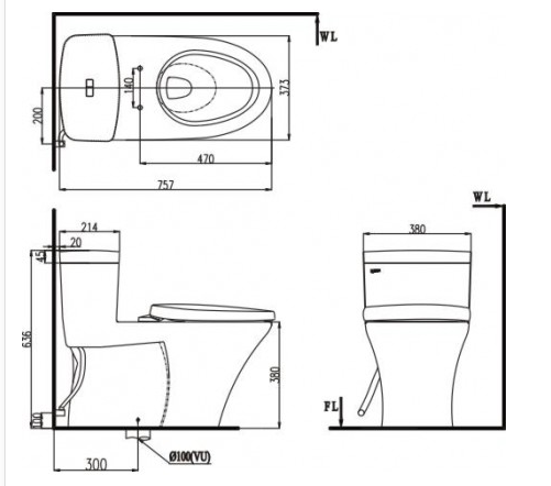 Bản vẽ kỹ thuật của bàn cầu INAX AC-900VRN-2