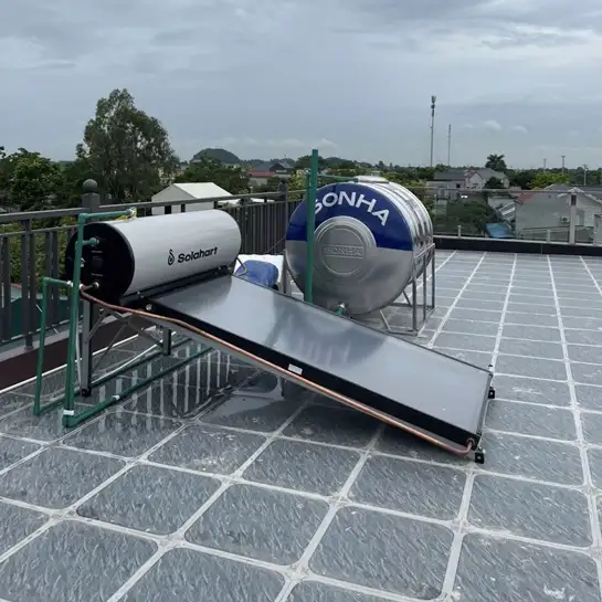 Mọi hệ thống đều được cung cấp đầy đủ với Bình chứa, tấm thu nhiệt, ống nước Nóng và Lạnh.