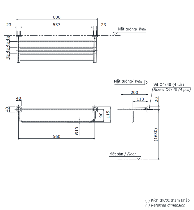 Bản vẽ kỹ thuật thanh vắt khăn Toto YTS408BV