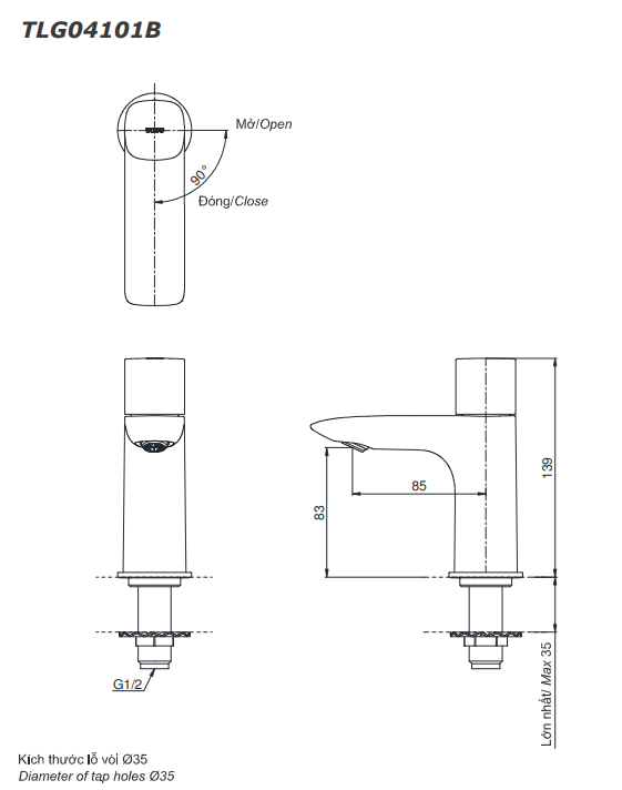 Thông tin sản phẩm vòi chậu lavabo lạnh TOTO TLG04101B