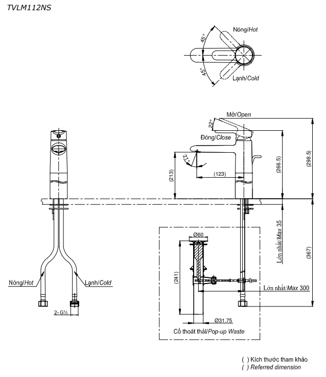 Bản vẽ kỹ thuật vòi chậu lavabo nóng lạnh New Standard TOTO TVLM112NS